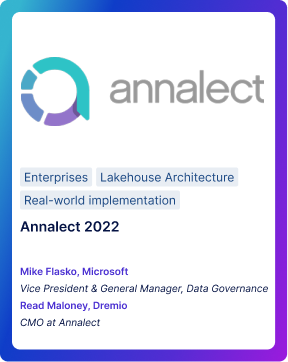 Watch the sessions on-demand that include topics such as Data Mesh, Iceberg, and Data Lakehouse Architecture best practices.